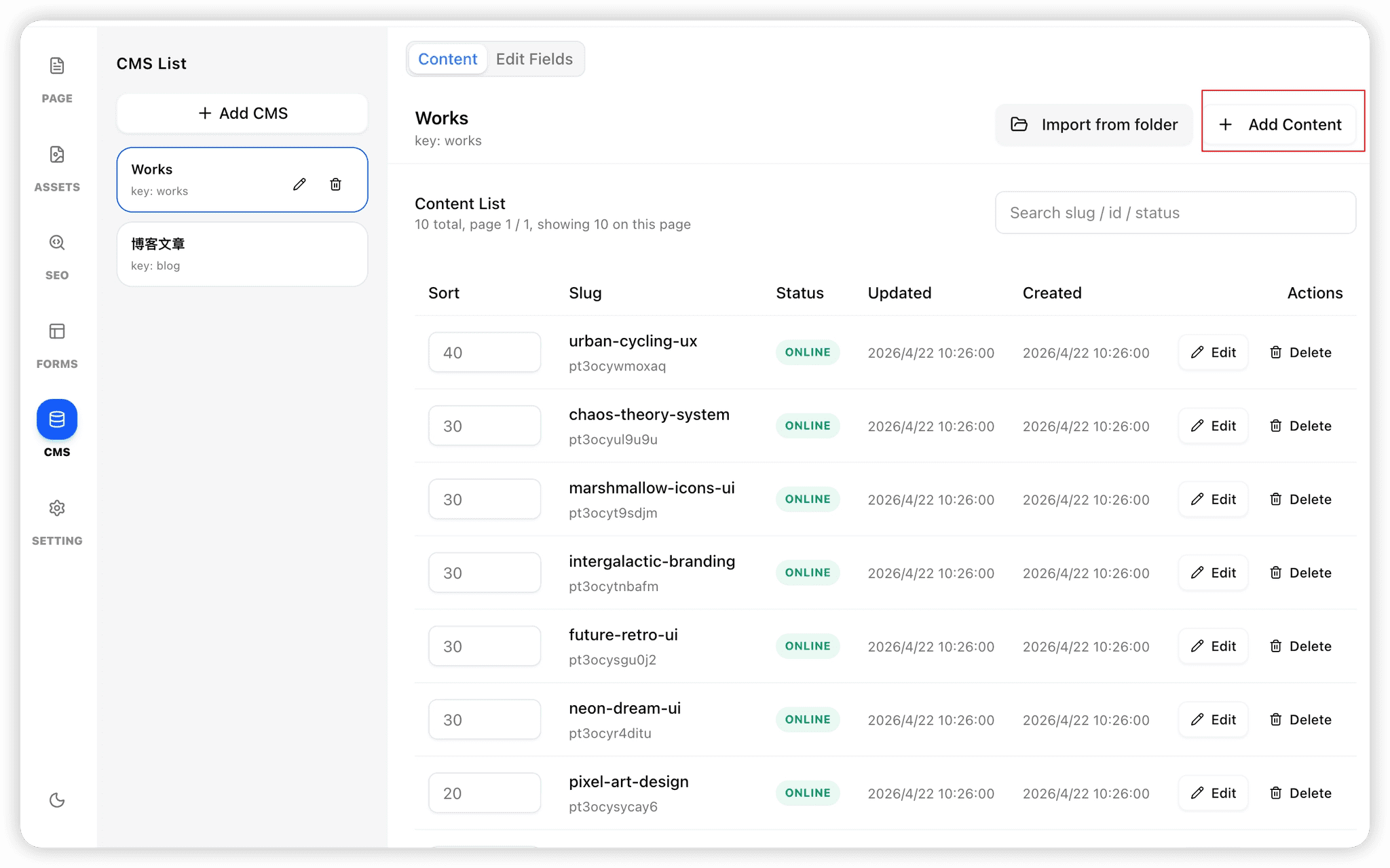 使用 CMS 管理作品集,默认 5 条数据。