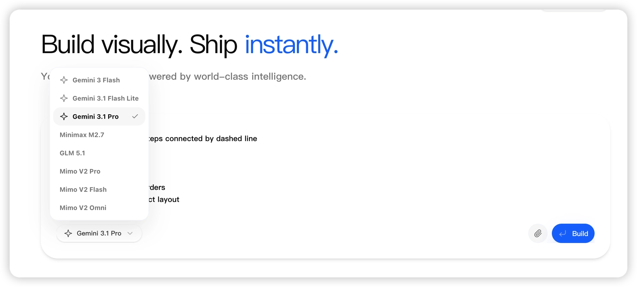 2. Select a model (e.g., Gemini 3, Gemini 3.1, minmax2.7, MimoV2)