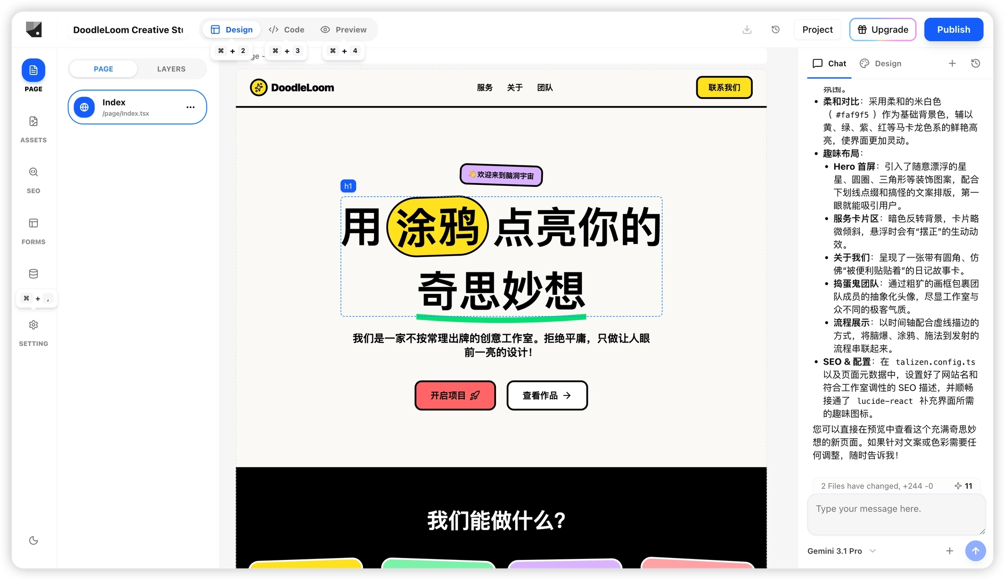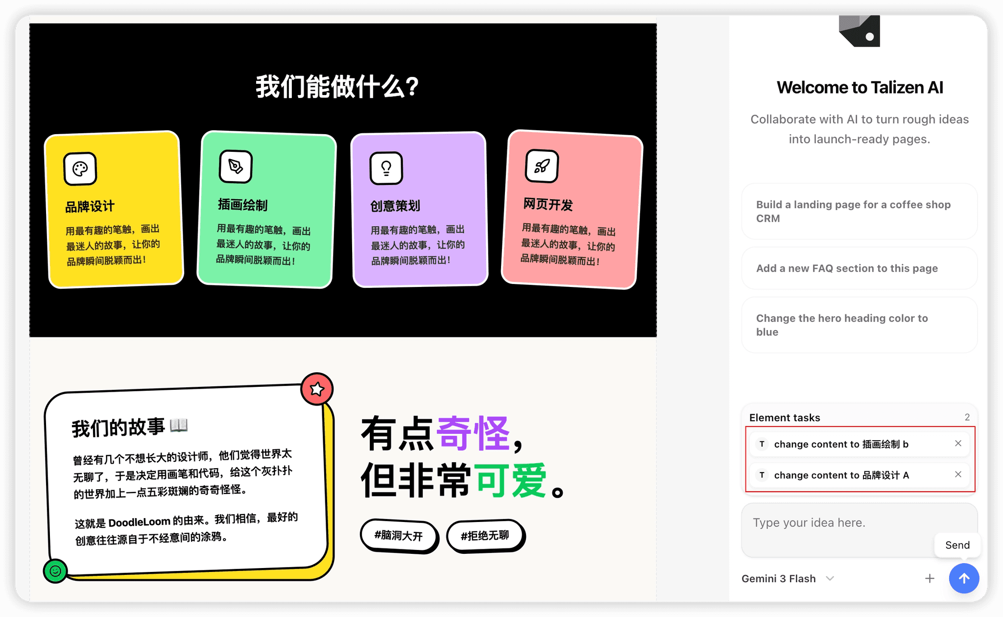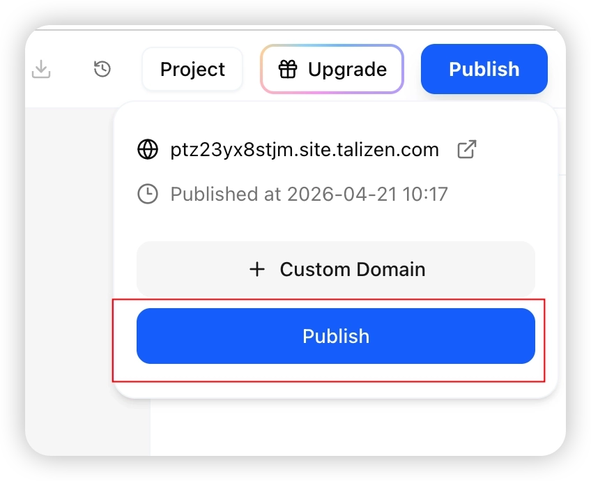 Use Talizen to generate and publish your first website in minutes. This tutorial demonstrates creating an illustration-style landing page for a design studio.