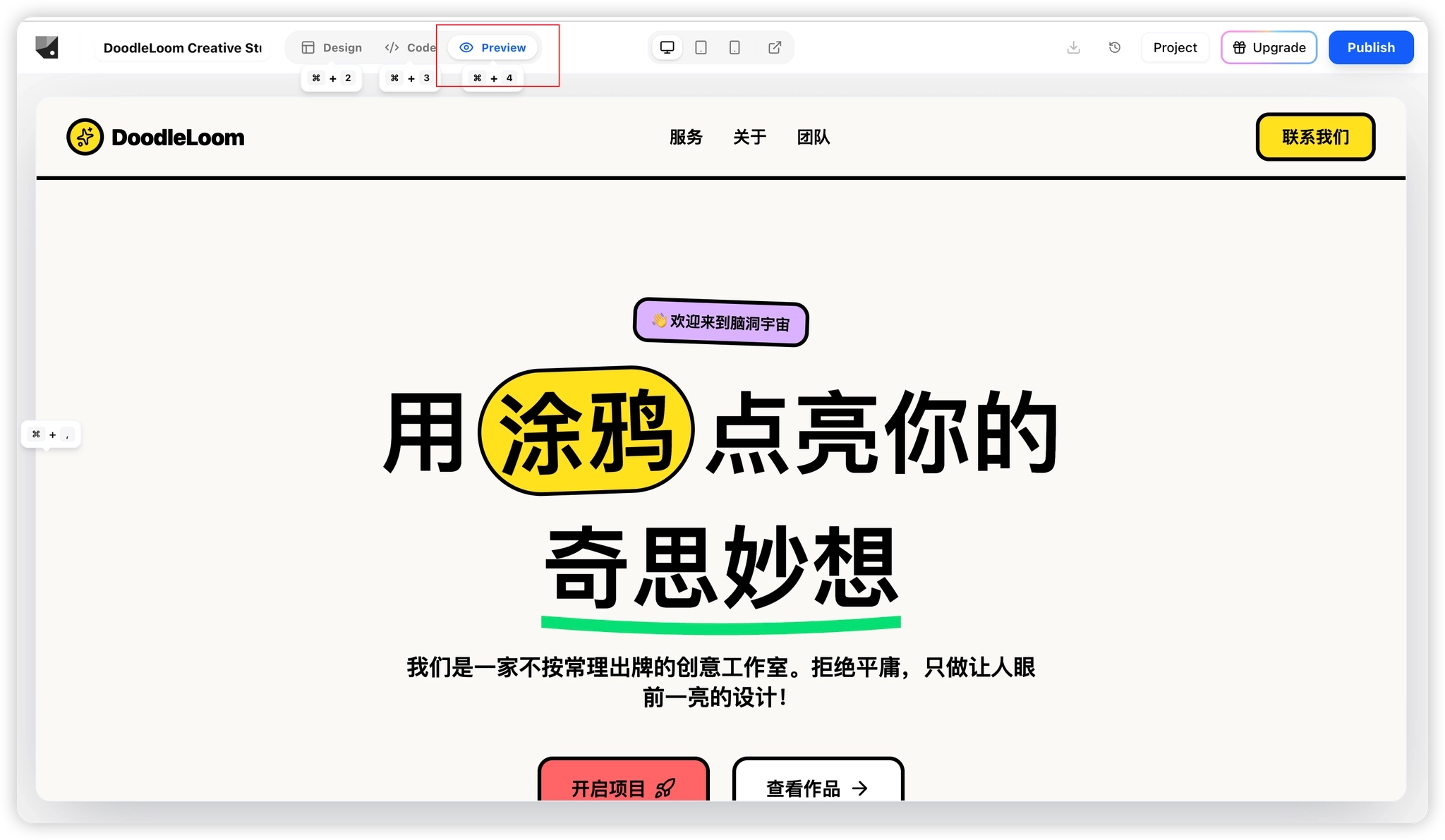 Create a playful doodle-style creative studio landing page.
