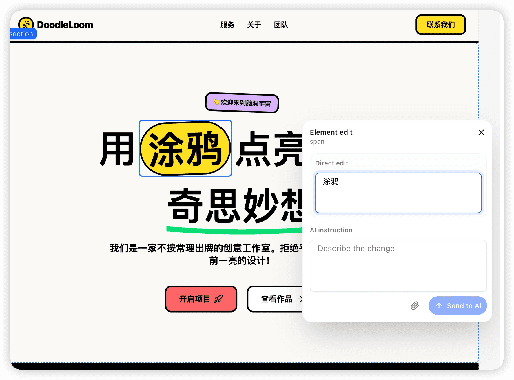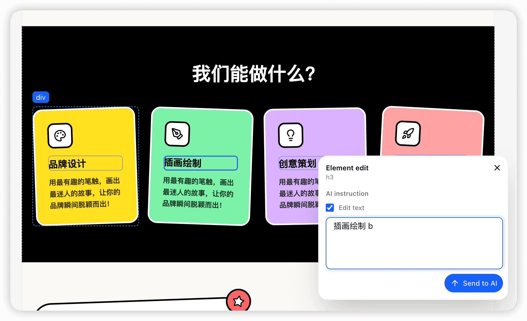 • Edit with AI: Some components don’t provide a direct input field (as shown below). In these cases, you can use AI to make changes: